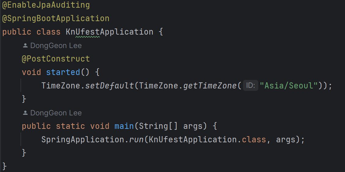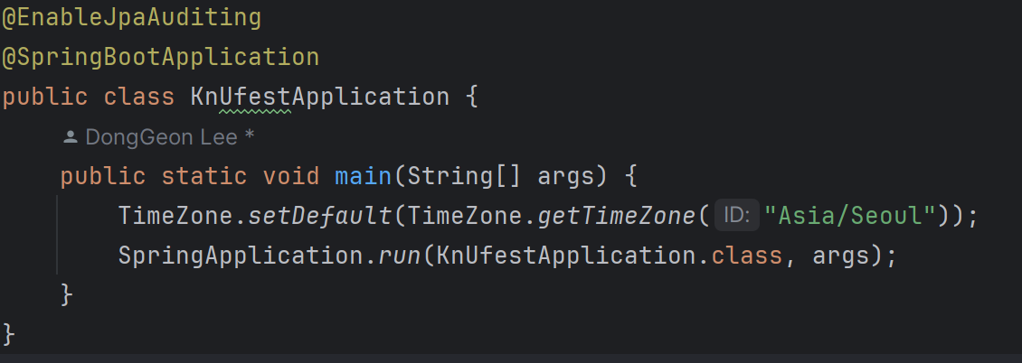 그래서 서버가 실행되는 그 순간 한번 TimeZone 의 setDefault 메서드를 활용하여 TimeZone을 설정해주면 된다.