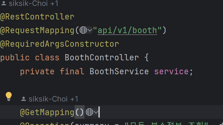 물론 이렇게 class 위에다가 덕지덕지 붙여도 큰 문제는 아니겠지만 일단 보기 너무 안좋고 무엇보다 AllArgsConstructor 사용을 지양하는 트렌드가 있다고 한다. 왜냐? 모든 필드가 추가된 생성자는 매개변수의 순서를 바꿔 넣을 수 도 있기 때문이라고 하는데... 크게 납득이 되진 못한다. 허나 가독성 측면에서도 그렇고 공식 문서에서도 생성자에다 직접 Builder 를 붙여주라고 하기에 나는 앞으로 계속 그렇게 할 것 같다.