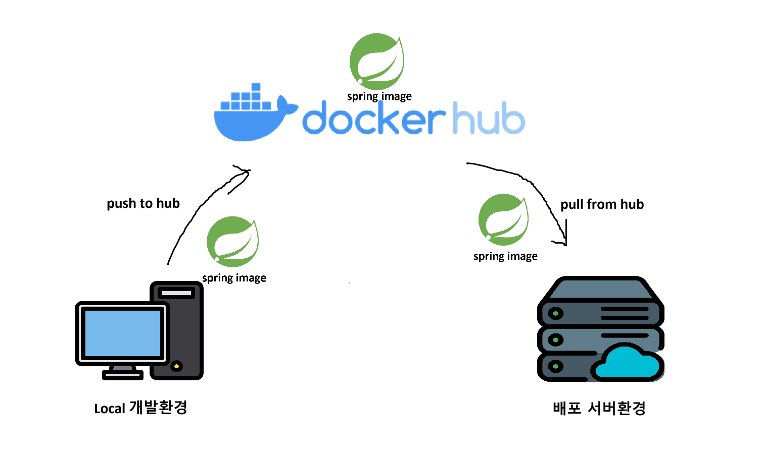 도커를 사용하면 그럴 필요 없이, 로컬 환경에서 바로 java 애플리케이션 실행파일을 이미지로 저장하고, DockerHub 를 통해 공유한 다음, 서버에 바로 이미지를 내려받아 컨테이너로 실행시키면 끝이다. DB 또한 이미 만들어진 DB 이미지가 있다. mysql, postgre 등등... 그대로 받아와서 컨테이너로 실행을 시켜, 두 컨테이너를 잘 연결시켜주면 끝이다.